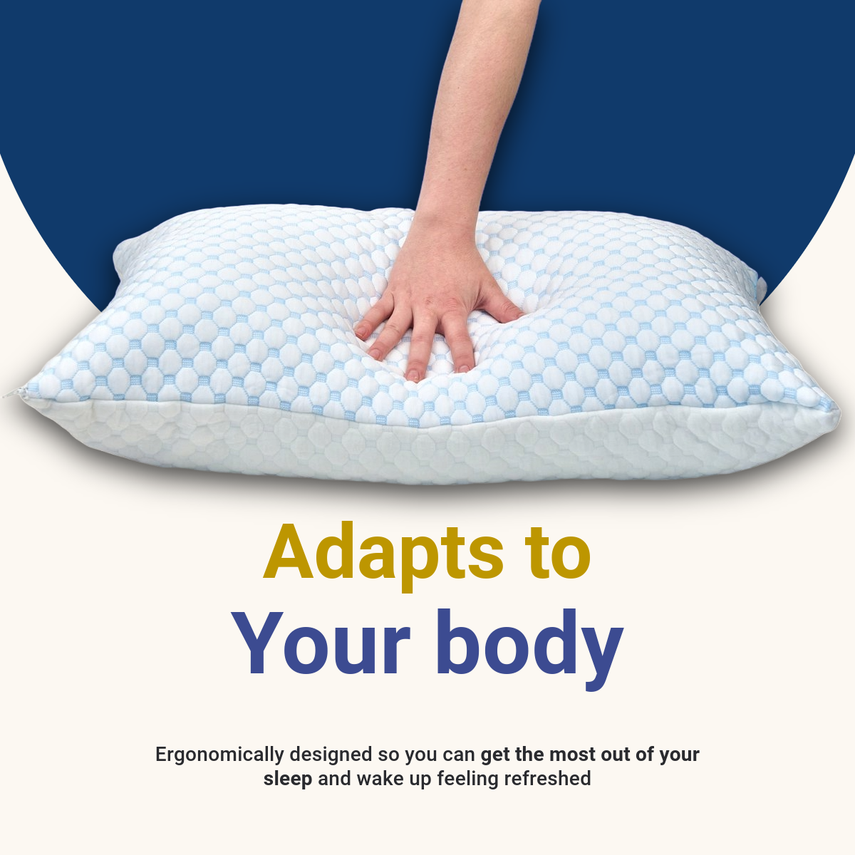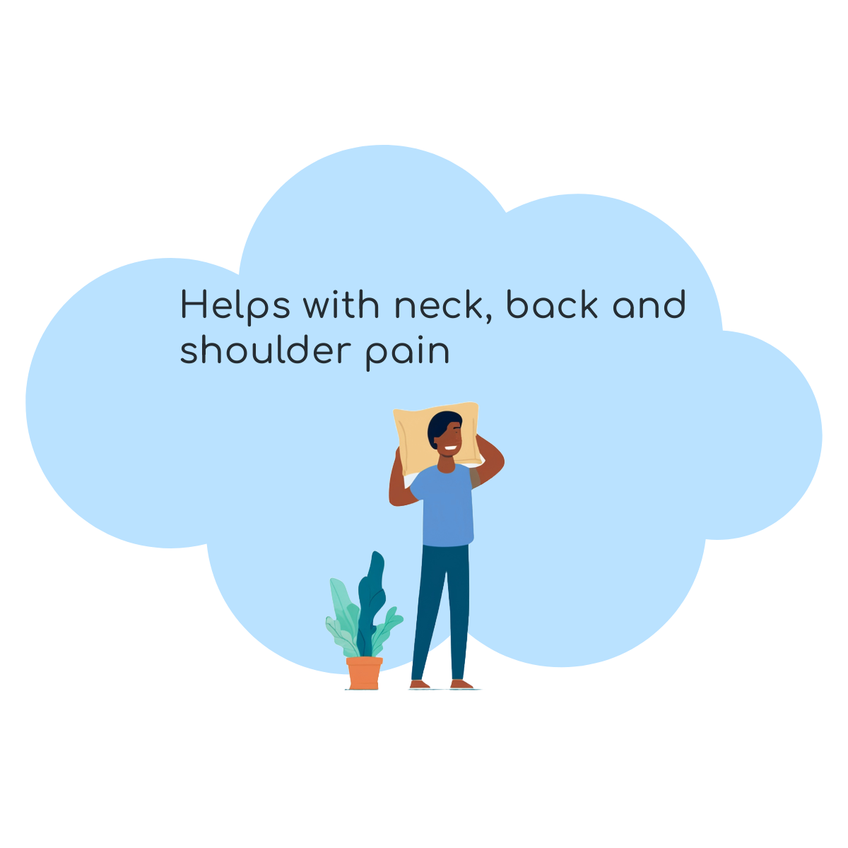 Filled with shredded memory foam that gently moulds to your unique shape — offering fully adjustable support that relieves pressure on the neck, shoulders and upper back. Ideal for reducing pain and improving posture overnight.
